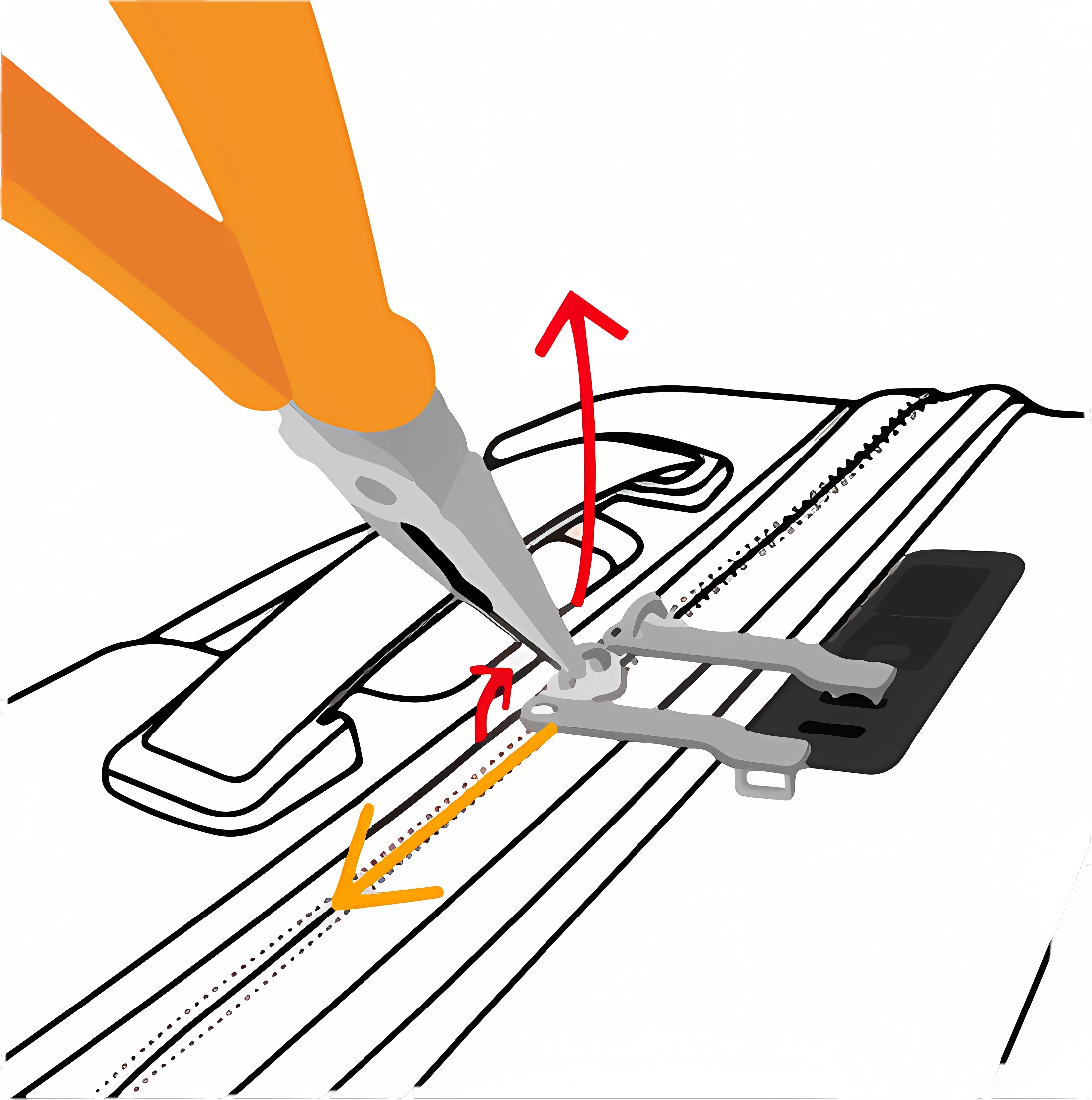 SCHRITT 3: DEN REIßVERSCHLUSS-ZIEHER AUSTAUSCHEN