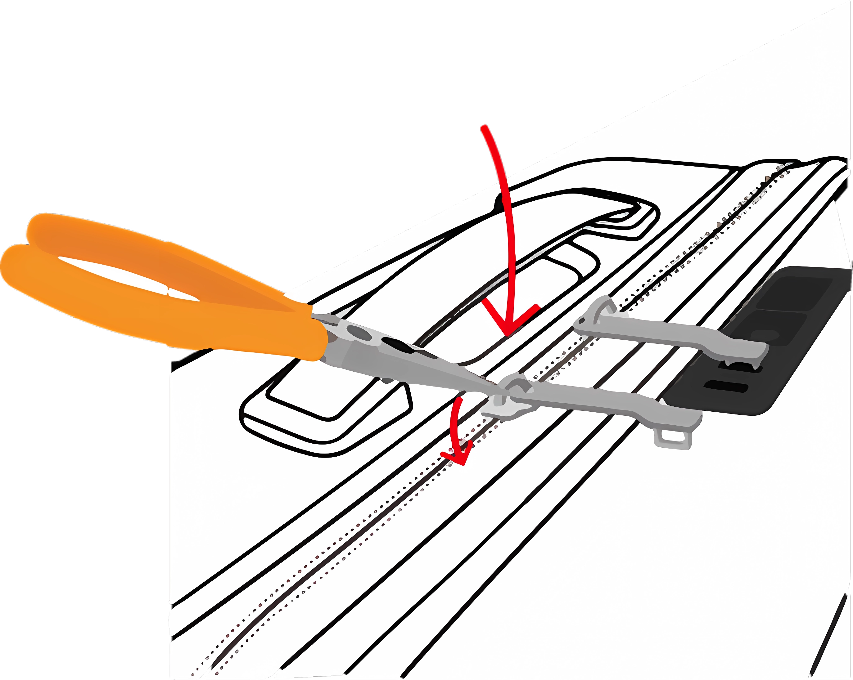 Verwenden Sie eine Zange, um den Reißverschlusskopf leicht zu öffnen.